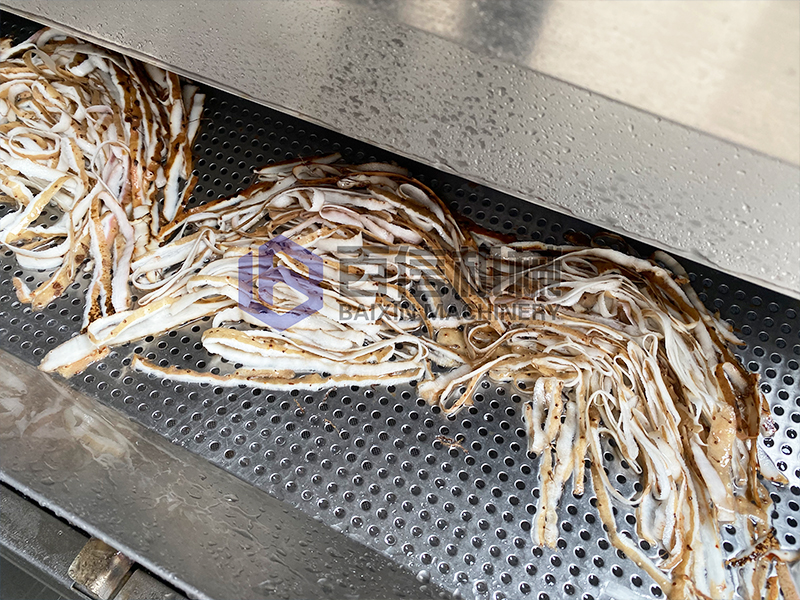 毛輥清洗機工作流程:產品進入清洗機內,鼓泡會將產品進行翻滾,通過高壓噴淋的對沖,對產品進行有效的清洗,循環水泵制造的水流,會讓產品在清洗的過程中不斷的前行,后續產品的進入,形成連續的清洗過程。雜質在設備的沖洗中,泥土會沉淀到設備底部,通過水流的循環,泥沙匯集到過濾池中。在過濾水箱中集中排出。漂浮物的處理通過水流的波浪滾動,在前行的過程中被過濾篩攔截,集中匯聚統一排出。設備底部傾斜式的設計,不僅可以將泥沙匯聚,更能保證在清洗設備的時候,達到快速有效的匯集排水,保證設備在清洗時達到無存水,起到無死角的目的。毛輥相當于人手起到搓洗的效果,能夠有效去除海鮮殼表面的污泥。